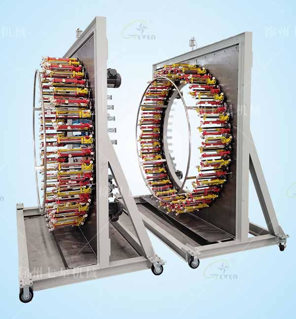 該系列編織機(jī)主要用于各種較大規(guī)格繩帶(工具繩、游艇用繩、索具繩等)、電線電纜屏蔽層、高壓膠管、大規(guī)格玻纖管等的編織。