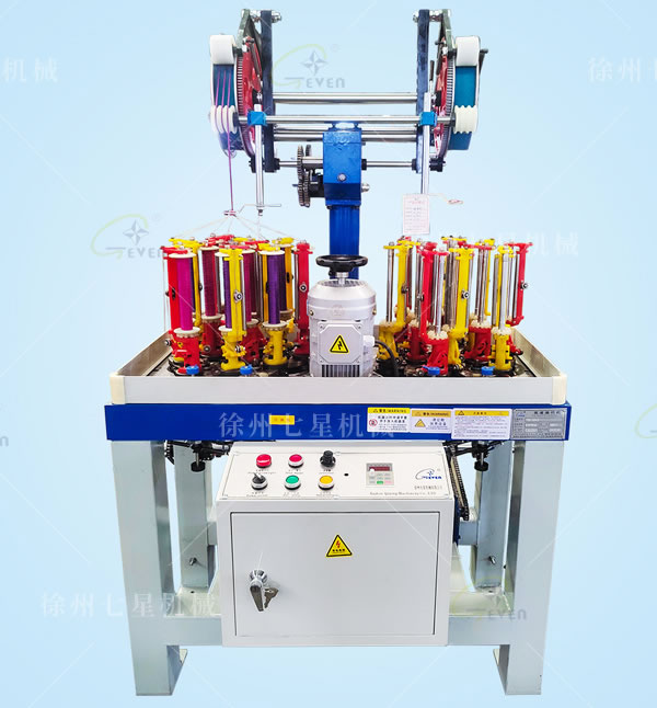 用途:織帶(鞋帶、服飾帶、松緊帶、波浪帶、滾邊帶、肩條帶等),測(cè)量繩、手提繩、拖車?yán)K、工具用繩,高空作業(yè)繩等各種繩帶的編織機(jī)。